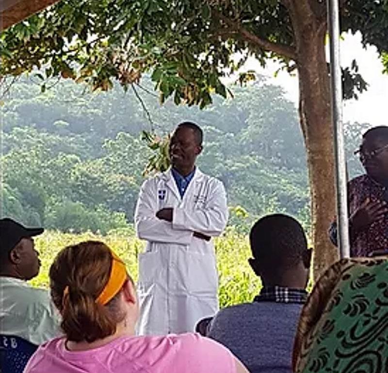 Dr. Folly speaking to the crowd on the first day of our medical mission clinic 2018.